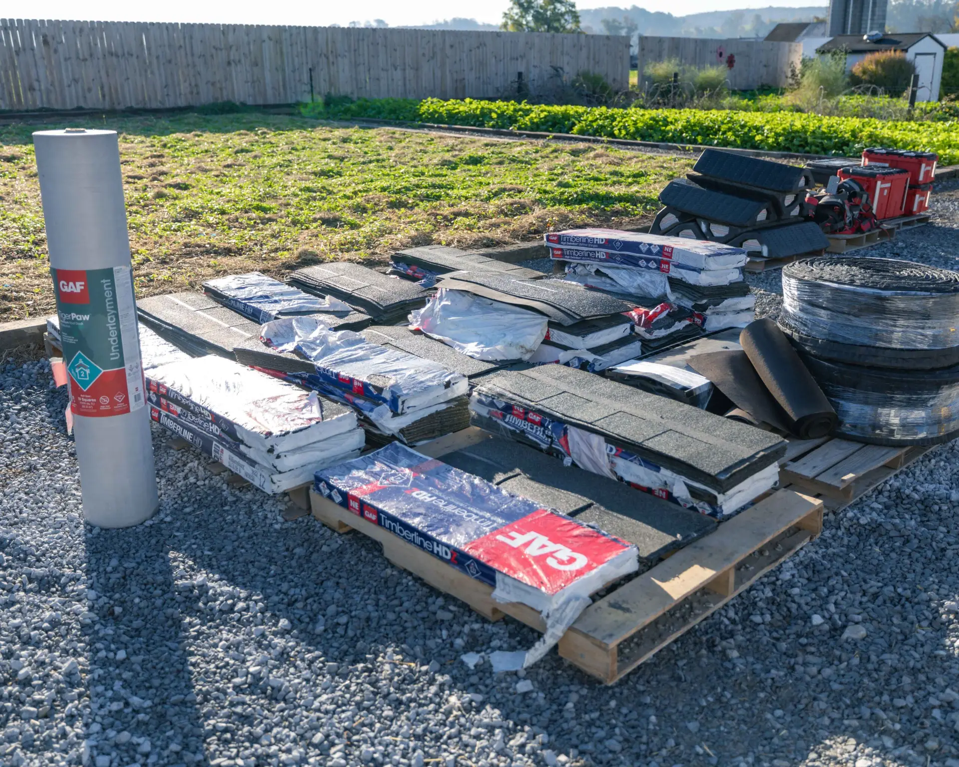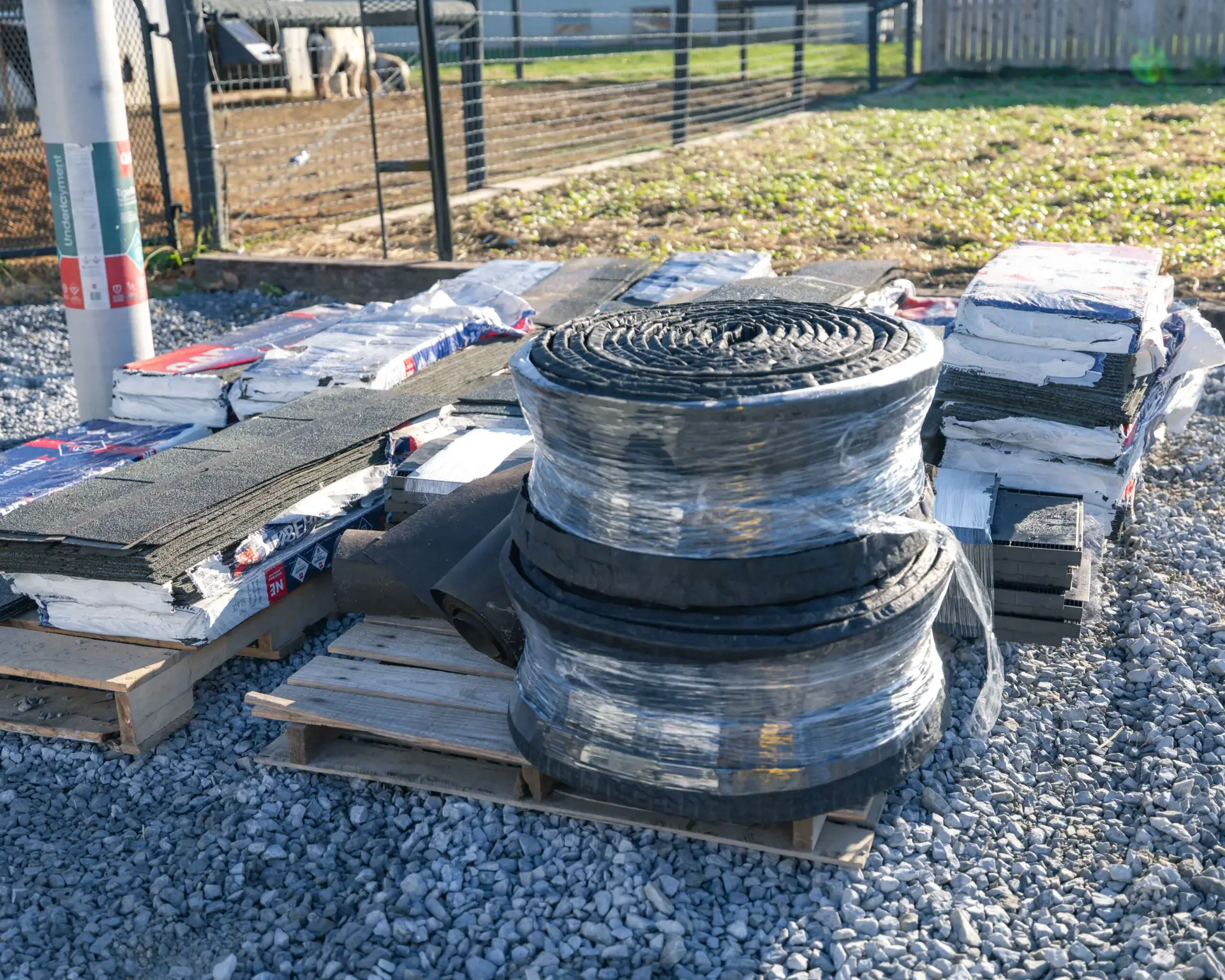 starting on outside rows of building materials and larger construction