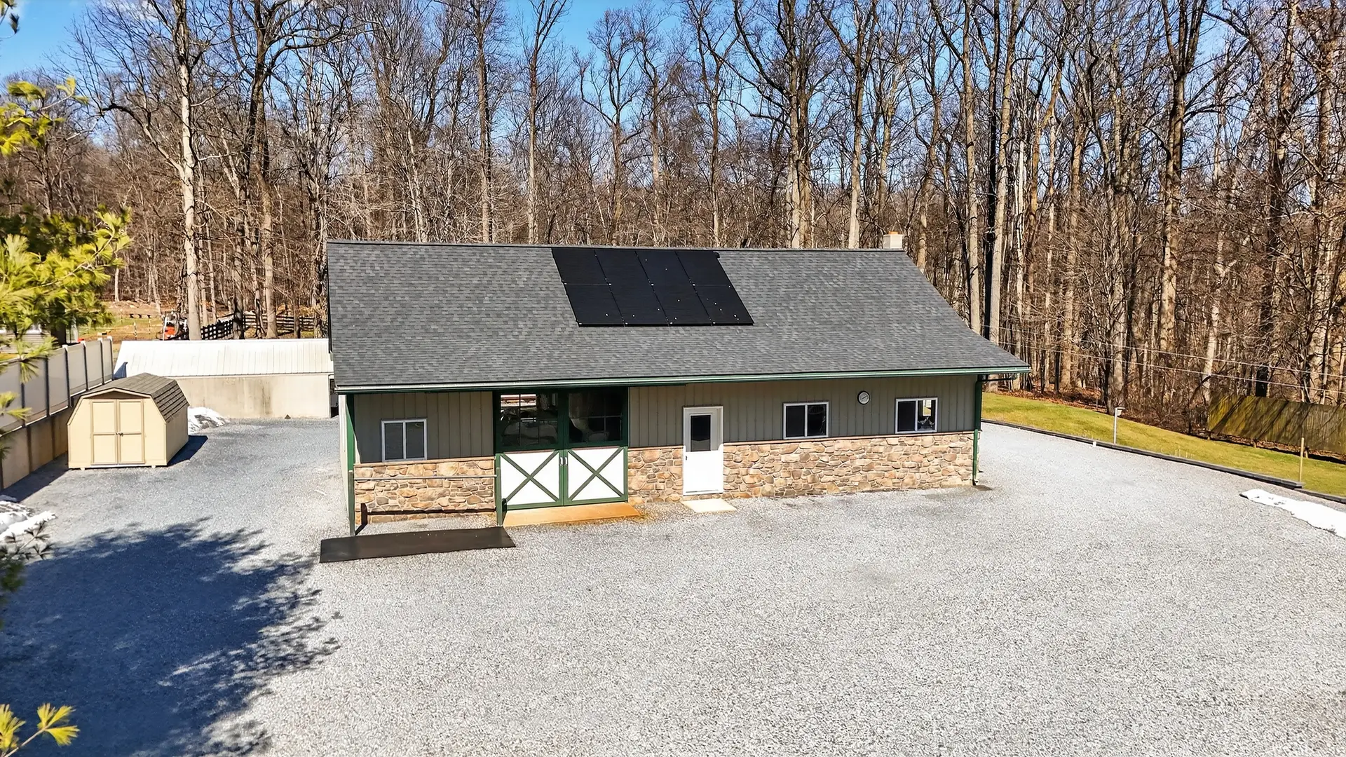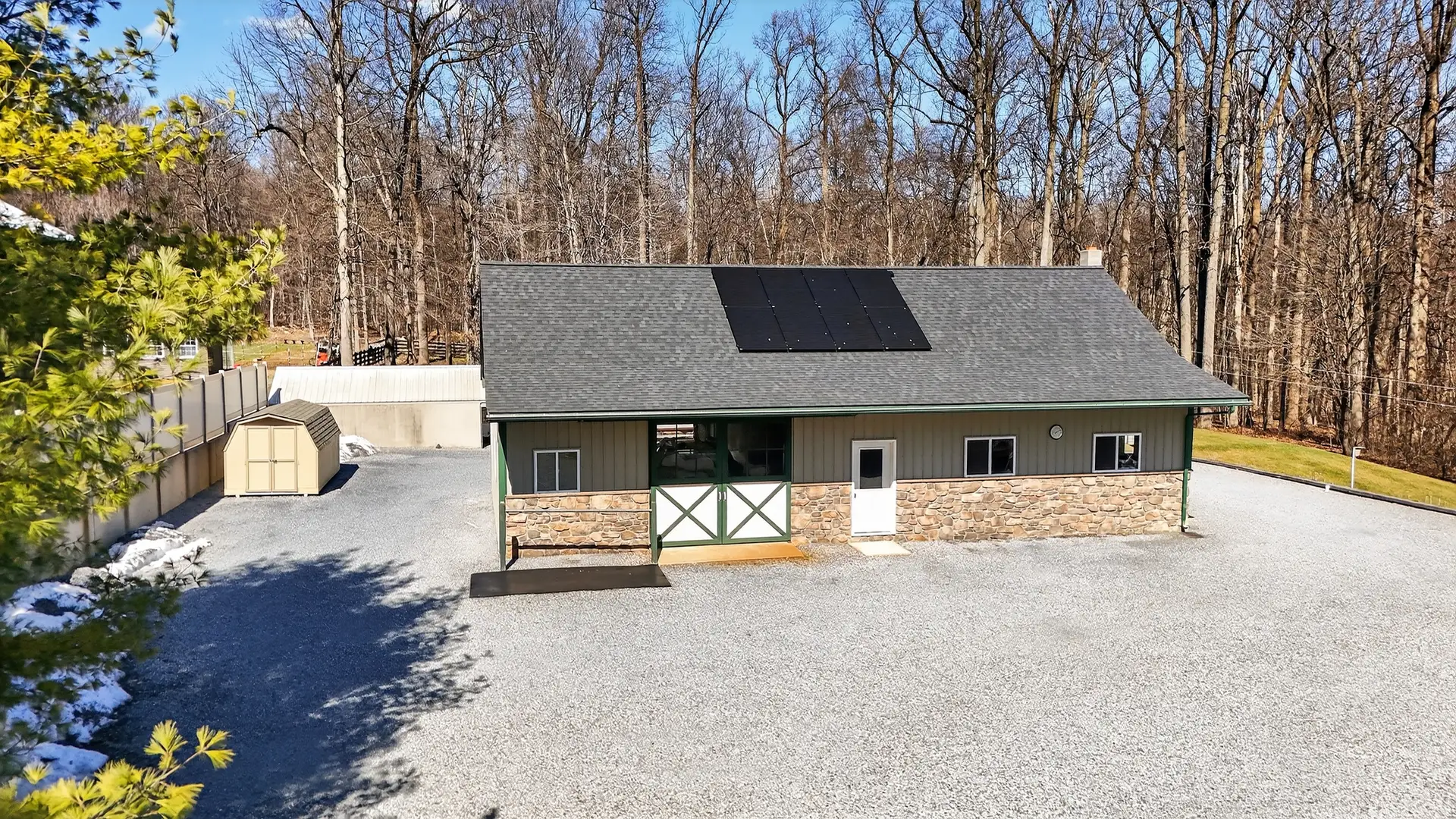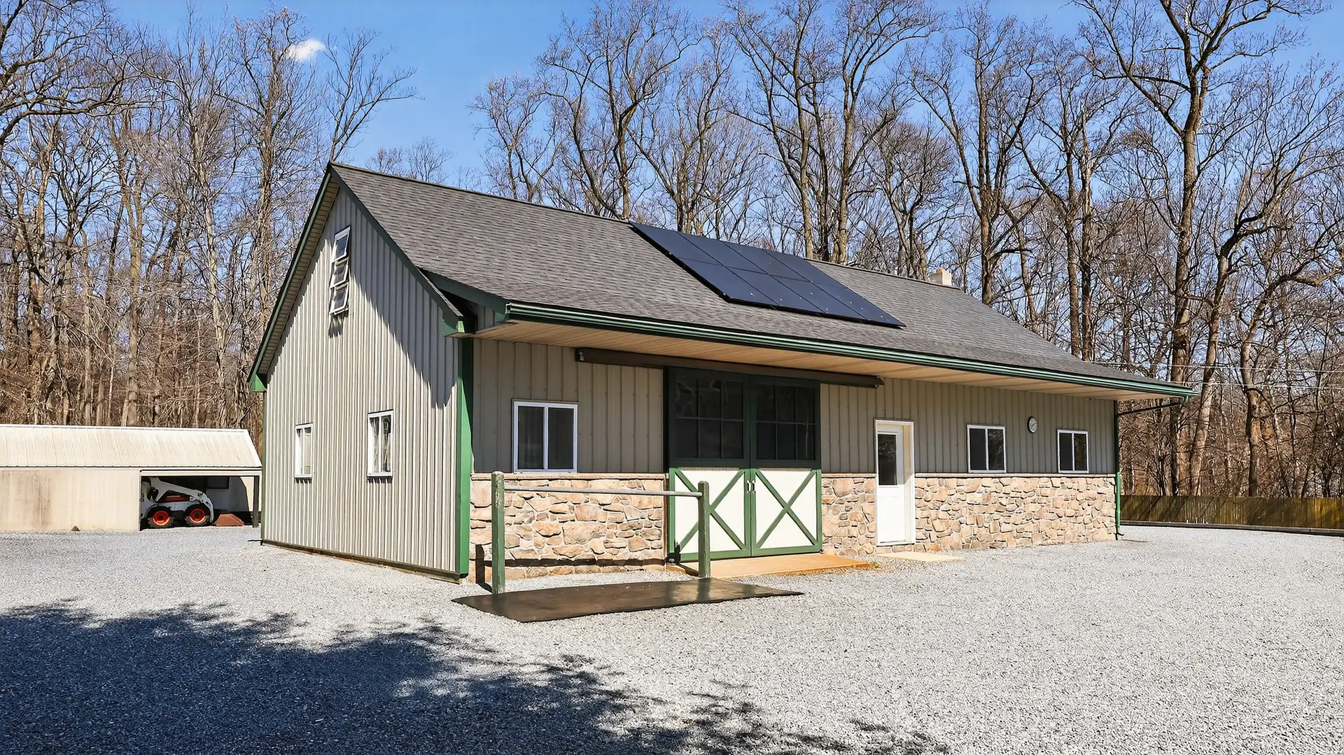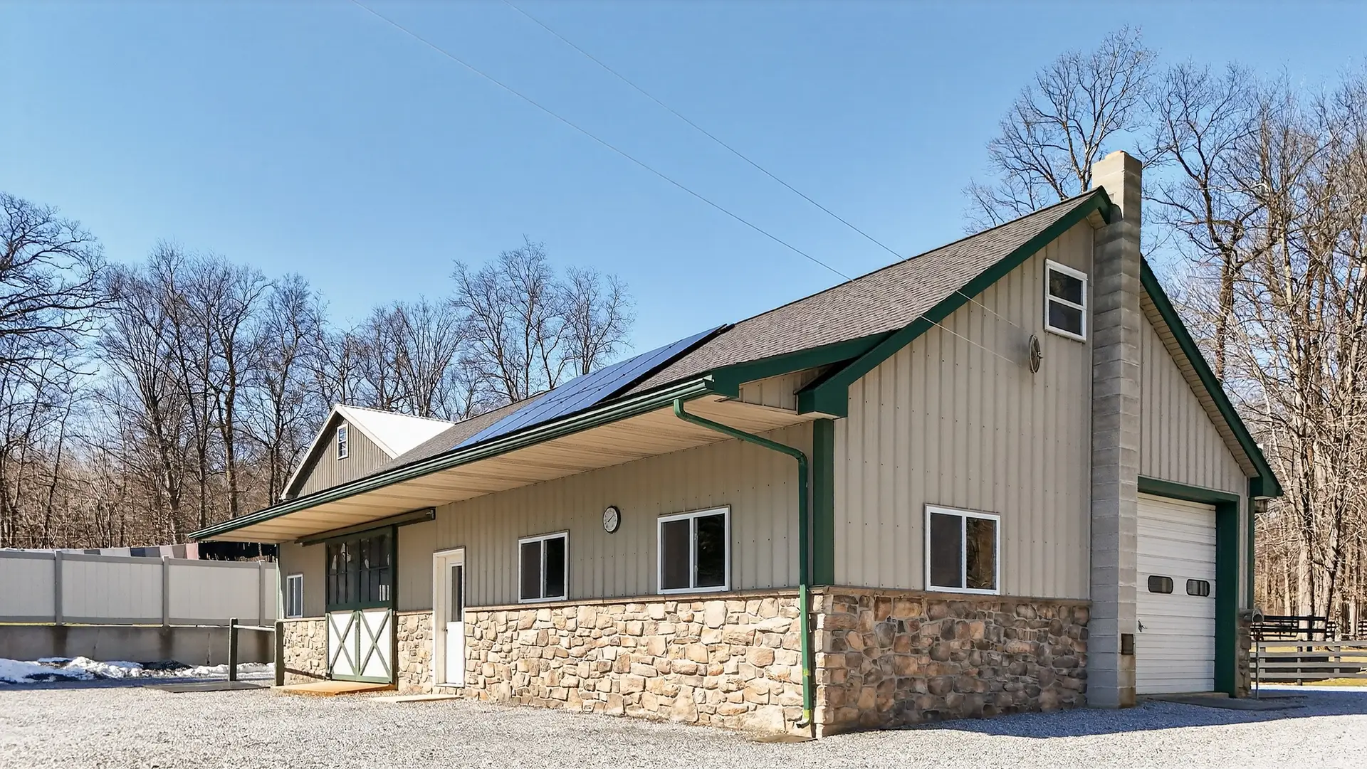 - 28′ x 52′ two-stall horse barn with Large workshop with wood stove (New roof in 2023)