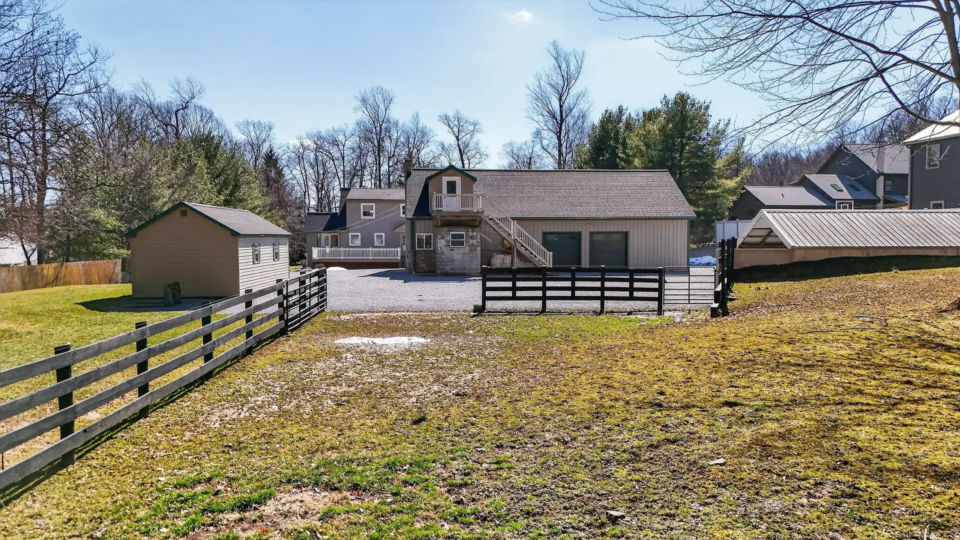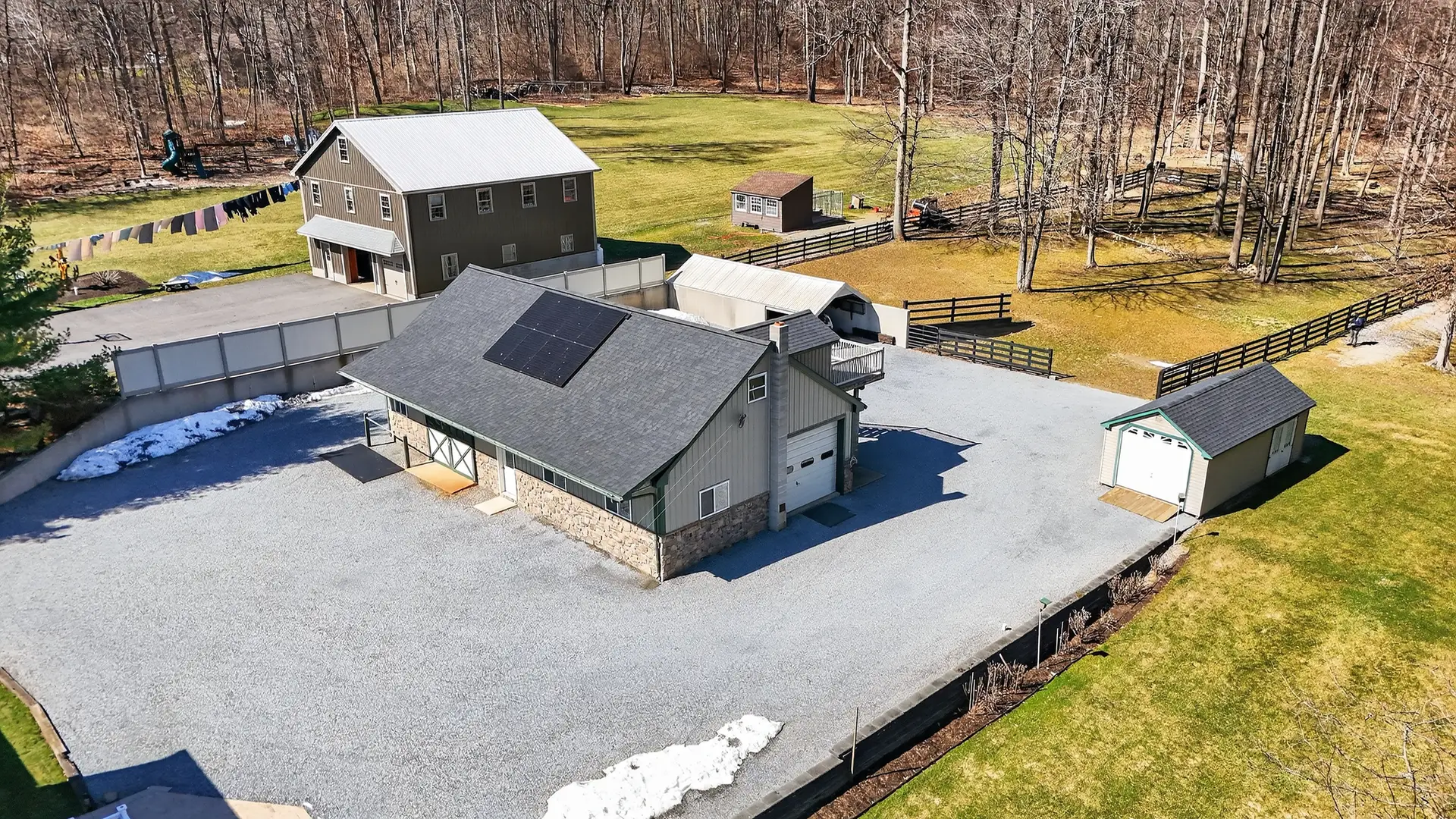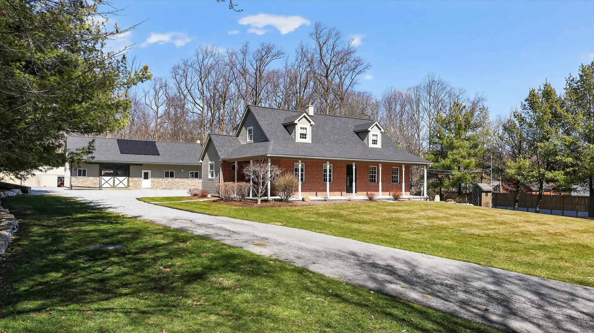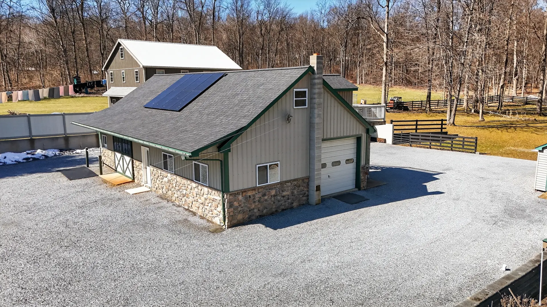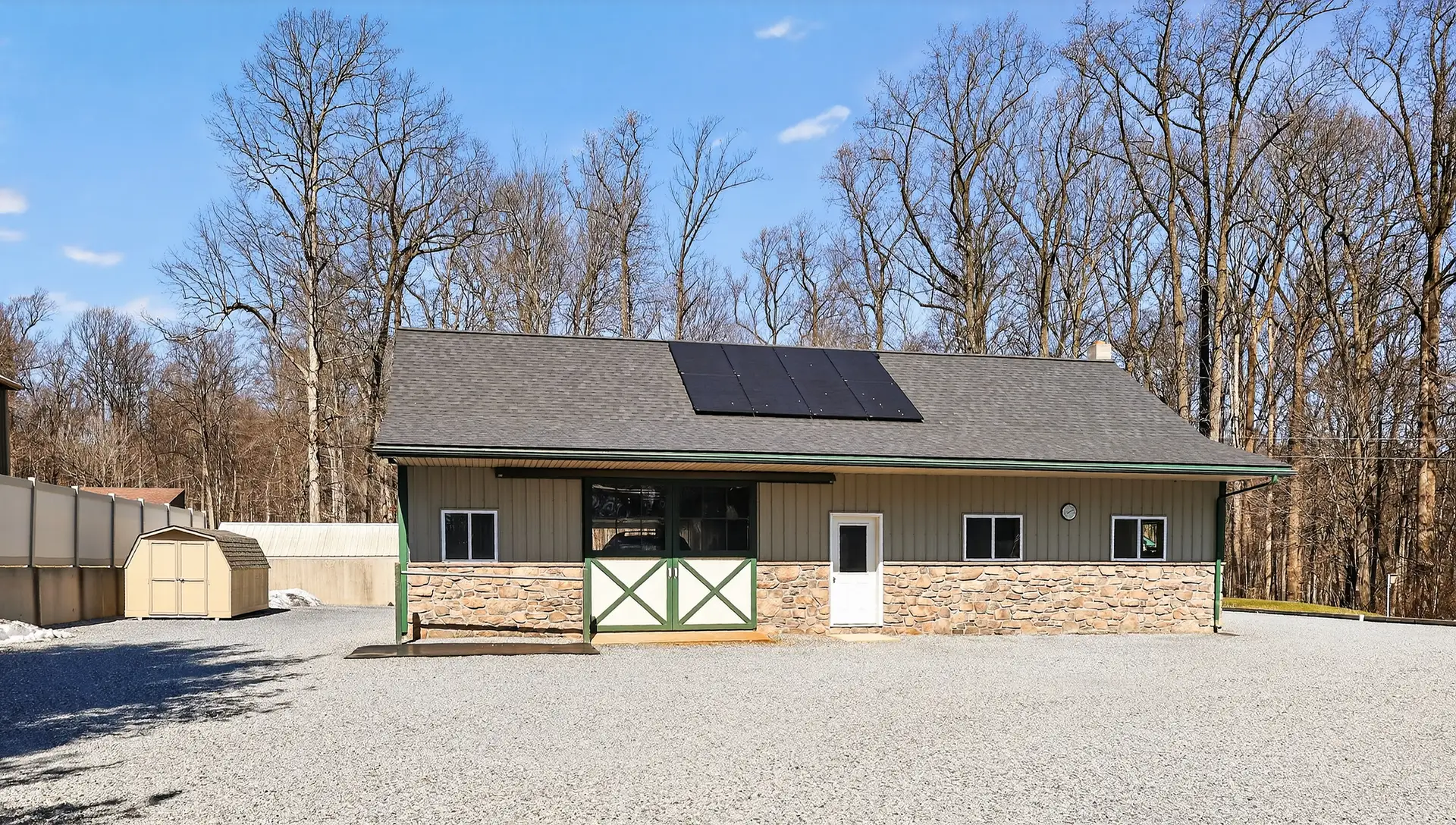 - 28′ x 52′ two-stall horse barn with Large workshop with wood stove (New roof in 2023)