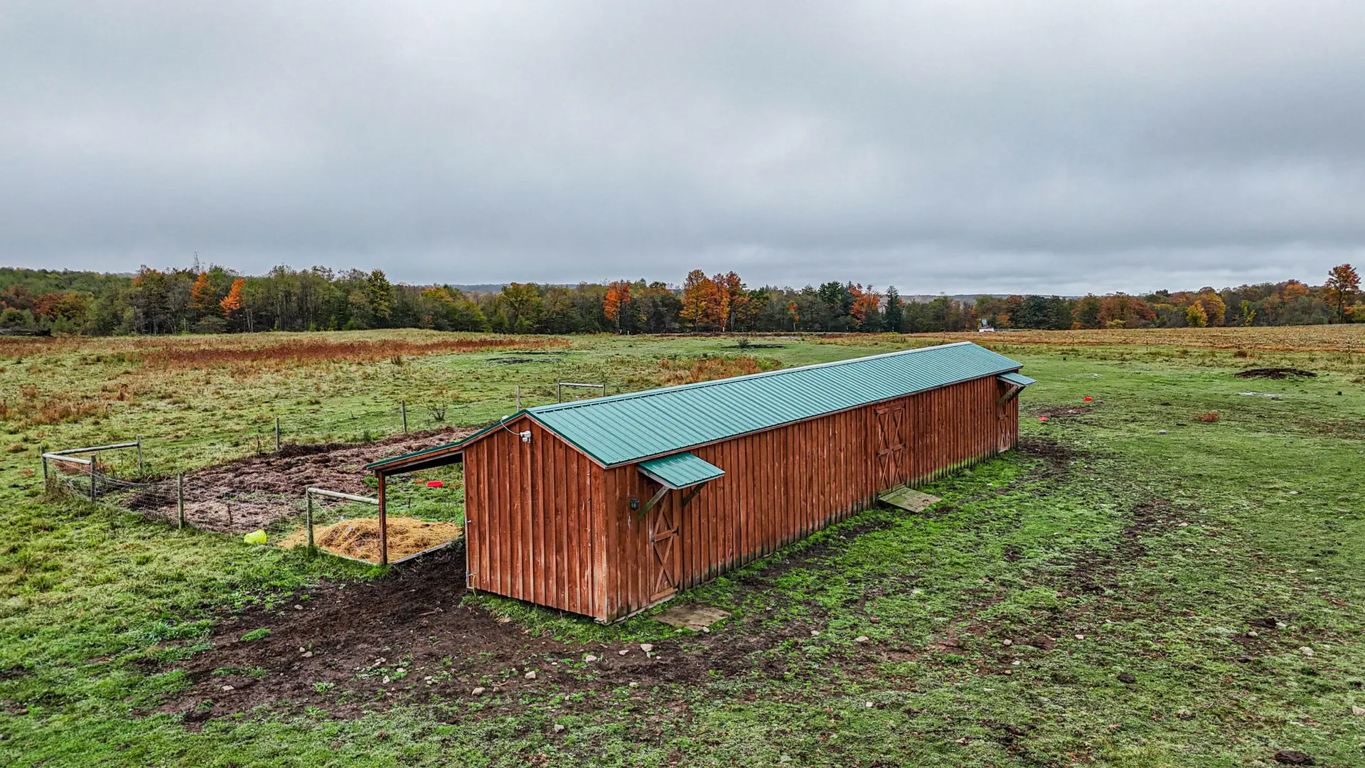 - ✔ 13′ × 16′ Three-Stall Milking Barn